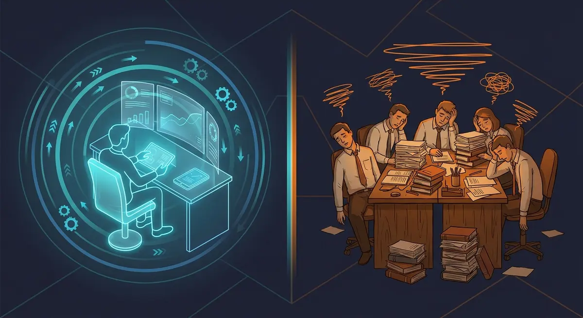 Trước đây, doanh nghiệp cần rất nhiều người để xử lý những việc lặp đi lặp lại. Một phòng kế toán cần người nhập liệu, kiểm tra hóa đơn, đối chiếu chứng từ, lập báo cáo, tổng hợp số liệu — và mỗi việc đó đều đòi hỏi sự kiên nhẫn, cẩn thận, và một sức chịu đựng nhất định trước sự đơn điệu. Một phòng vận hành cần người theo dõi tiến độ, cập nhật file, nhắc việc, làm biên bản, lập checklist. Một phòng kinh doanh cần người lọc data, cập nhật CRM, soạn báo giá, làm báo cáo tuần. Tất cả những việc đó đều cần sự chăm chỉ, và vì vậy, người chăm chỉ từng có lợi thế rất lớn — có thể nói là lợi thế lớn nhất trong môi trường doanh nghiệp.